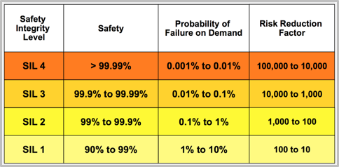 There are four SILs: SIL 1, SIL 2, SIL 3, and SIL 4. The higher the number of SIL, the higher the risk and the stricter the requirements: